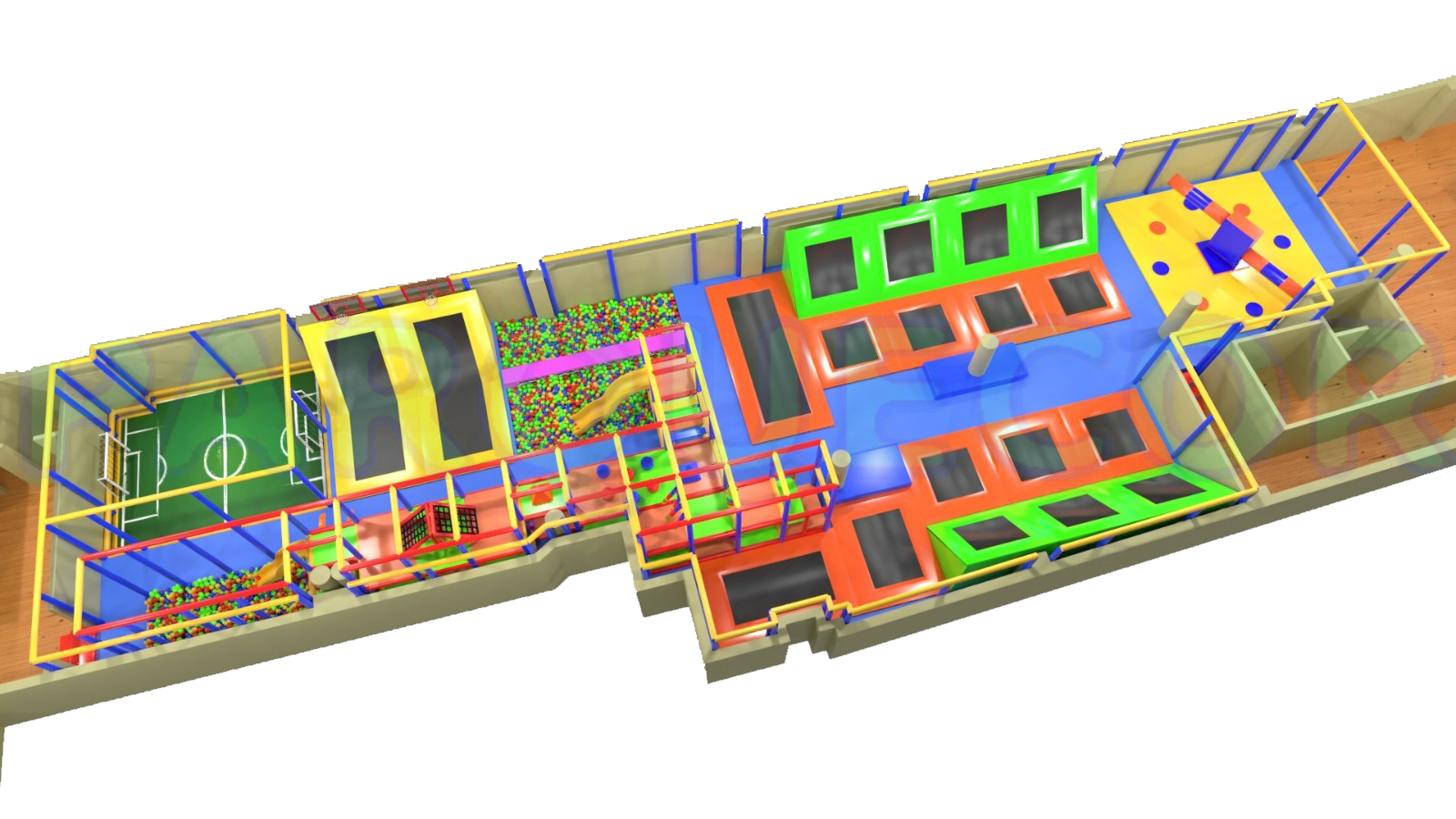 ¡Nuestra cancha de Futbol está lista y esperándote! Las reglas son simples, dos equipos se enfrentan uno contra el otro en un campo de trampolines.